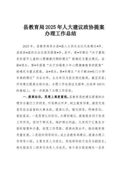 / 【七哥公文】2025年:县教育局2025年人大建议政协提案办理工作总结+更多免费公文+VX:QiGeGongWen2024