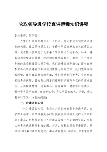 【七哥公文】2025年:党政领导进学校宣讲禁毒知识讲稿+更多免费公文+VX:QiGeGongWen2024