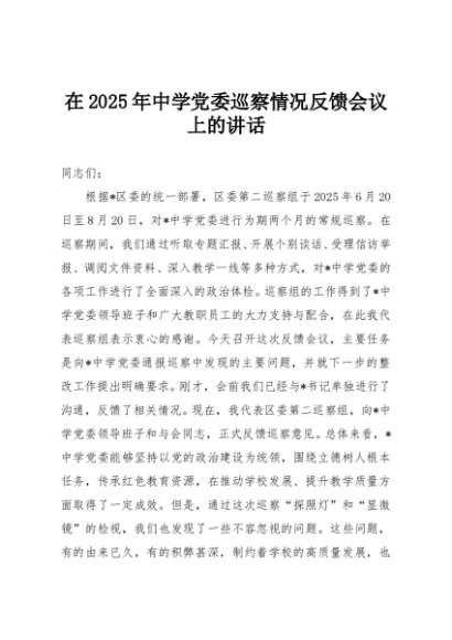 / 【七哥公文】2025年:在2025年中学党委巡察情况反馈会议上的讲话+更多免费公文+VX:QiGeGongWen2024