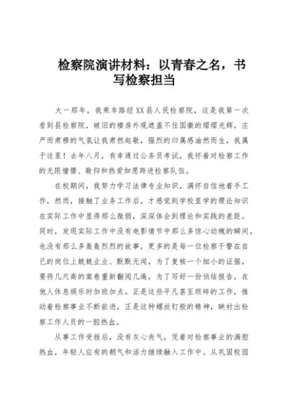 【七哥公文】2025年:检察院演讲材料:以青春之名,书写检察担当+更多免费公文+VX:QiGeGongWen2024