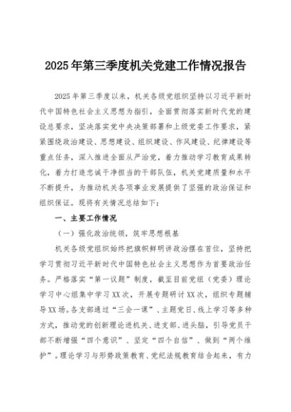 / 【七哥公文】2025年:2025年第三季度机关党建工作情况报告+更多免费公文+VX:QiGeGongWen2024