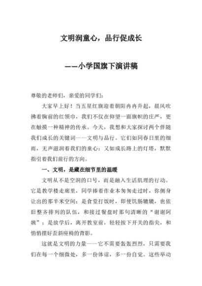 / 【七哥公文】2025年:小学国旗下演讲稿:文明润童心,品行促成长+更多免费公文+VX:QiGeGongWen2024