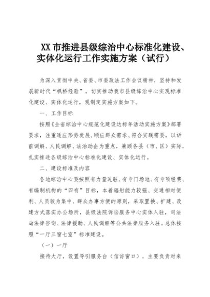 【七哥公文】2025年:XX市推进县级综治中心标准化建设、实体化运行工作实施方案(试行)+更多免费公文+VX:QiGeGongWen2024