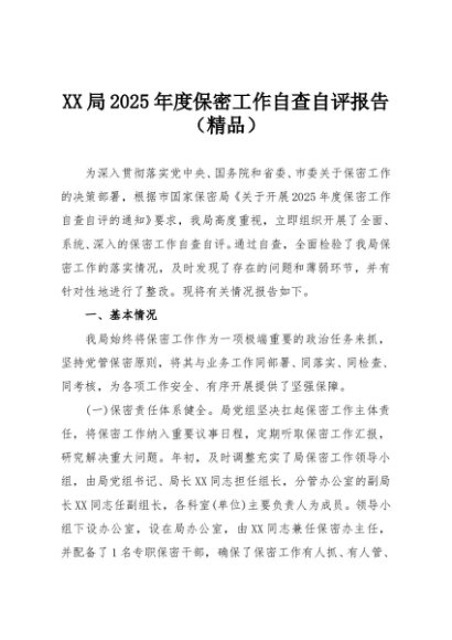 / 【七哥公文】2025年:XX局2025年度保密工作自查自评报告(精品)+更多免费公文+VX:QiGeGongWen2024
