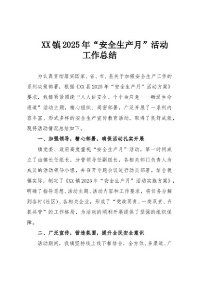 / 【七哥公文】2025年:XX镇2025年“安全生产月”活动工作总结+更多免费公文+VX:QiGeGongWen2024
