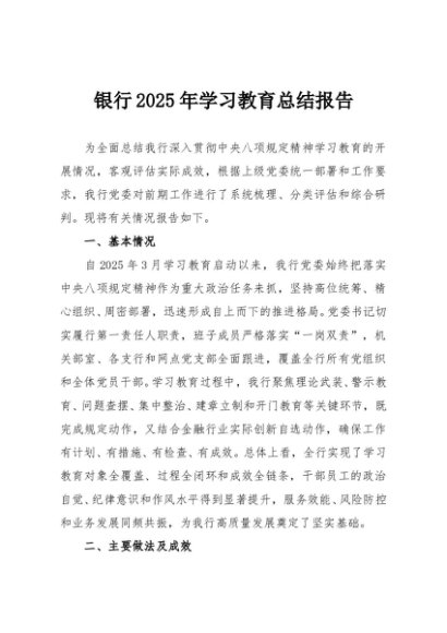 / 【七哥公文】2025年:银行2025年学习教育总结报告+更多免费公文+VX:QiGeGongWen2024