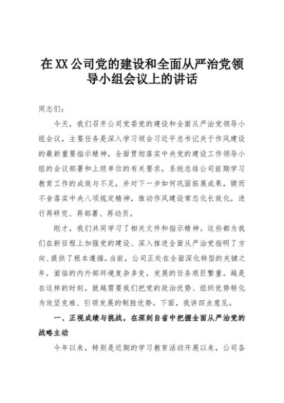 / 【七哥公文】2025年:在XX公司党的建设和全面从严治党领导小组会议上的讲话+更多免费公文+VX:QiGeGongWen2024