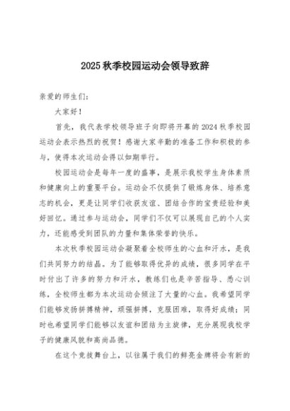 【七哥公文】2025年:2025秋季校园运动会领导致辞+更多免费公文+VX:QiGeGongWen2024