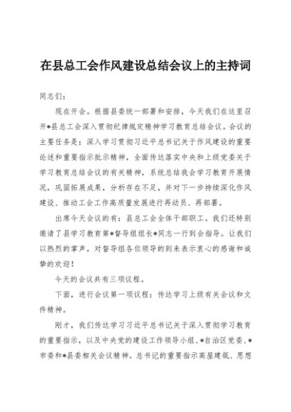 / 【七哥公文】2025年:在县总工会作风建设总结会议上的主持词+更多免费公文+VX:QiGeGongWen2024