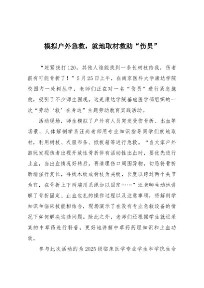 / 【七哥公文】2025年:模拟户外急救,就地取材救助“伤员”+更多免费公文+VX:QiGeGongWen2024