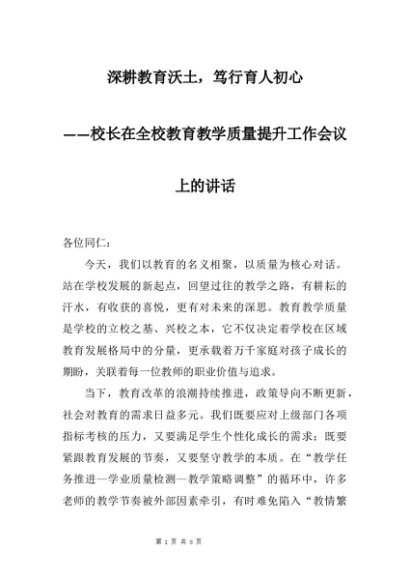 【七哥公文】2025年:校长在全校教育教学质量提升工作会议上的讲话:深耕教育沃土,笃行育人初心+更多免费公文+VX:QiGeGongWen2024