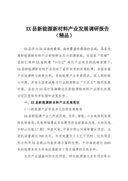 / 【七哥公文】2025年:XX县新能源新材料产业发展调研报告(精品)+更多免费公文+VX:QiGeGongWen2024