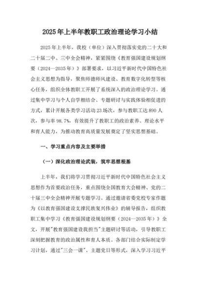 / 【七哥公文】2025年:2025年上半年教职工政治理论学习小结+更多免费公文+VX:QiGeGongWen2024