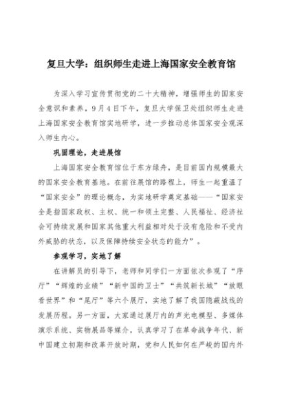 【七哥公文】2025年:复旦大学:组织师生走进上海国家安全教育馆+更多免费公文+VX:QiGeGongWen2024