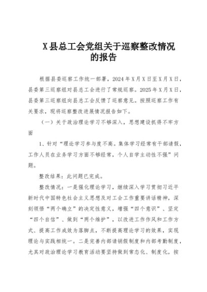 / 【七哥公文】2025年:X县总工会党组关于巡察整改情况的报告+更多免费公文+VX:QiGeGongWen2024