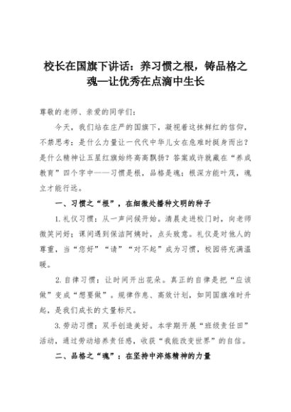 【七哥公文】2025年:校长在国旗下讲话:养习惯之根,铸品格之魂—让优秀在点滴中生长+更多免费公文+VX:QiGeGongWen2024