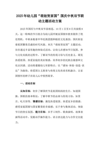 【七哥公文】2025年:2025年幼儿园“萌娃贺家国”国庆中秋双节联动主题活动方案+更多免费公文+VX:QiGeGongWen2024
