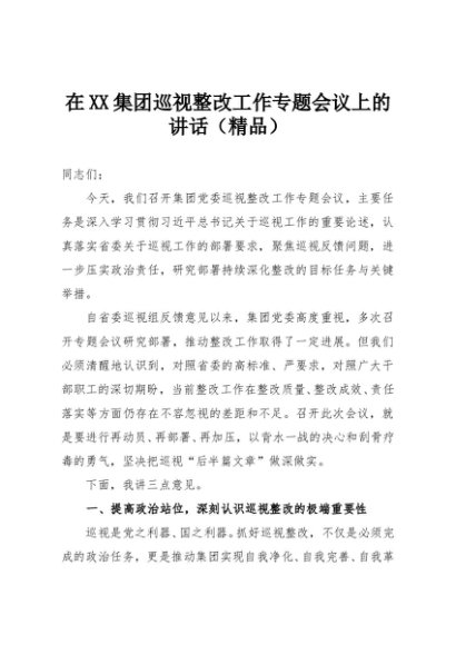 / 【七哥公文】2025年:在XX集团巡视整改工作专题会议上的讲话(精品)+更多免费公文+VX:QiGeGongWen2024