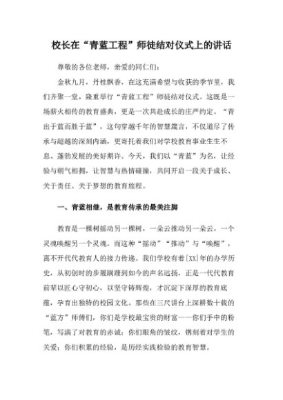 / 【七哥公文】2025年:校长在“青蓝工程”师徒结对仪式上的讲话+更多免费公文+VX:QiGeGongWen2024