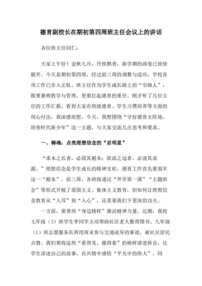 / 【七哥公文】2025年:德育副校长在期初第四周班主任会议上的讲话+更多免费公文+VX:QiGeGongWen2024