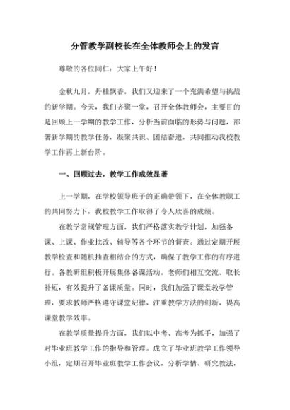 / 【七哥公文】2025年:分管教学副校长在全体教师会上的发言+更多免费公文+VX:QiGeGongWen2024