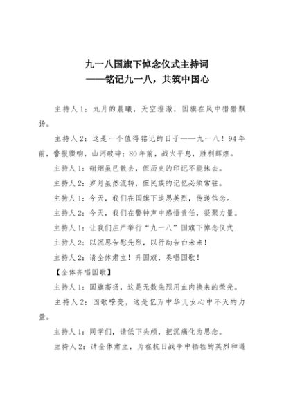 【七哥公文】2025年:九一八国旗下悼念仪式主持词-铭记九一八,共筑中国心+更多免费公文+VX:QiGeGongWen2024