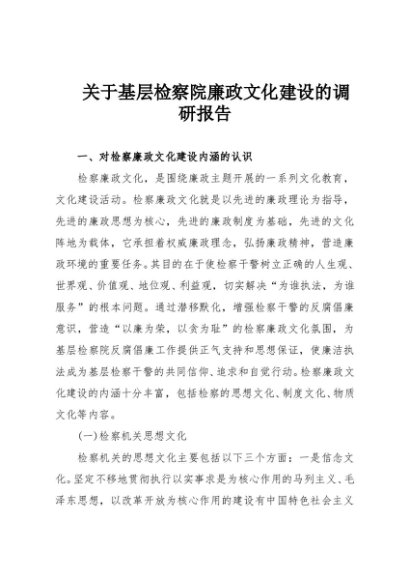 / 【七哥公文】2025年:关于基层检察院廉政文化建设的调研报告+更多免费公文+VX:QiGeGongWen2024