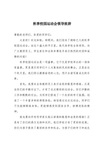 【七哥公文】2025年:秋季校园运动会领导致辞+更多免费公文+VX:QiGeGongWen2024