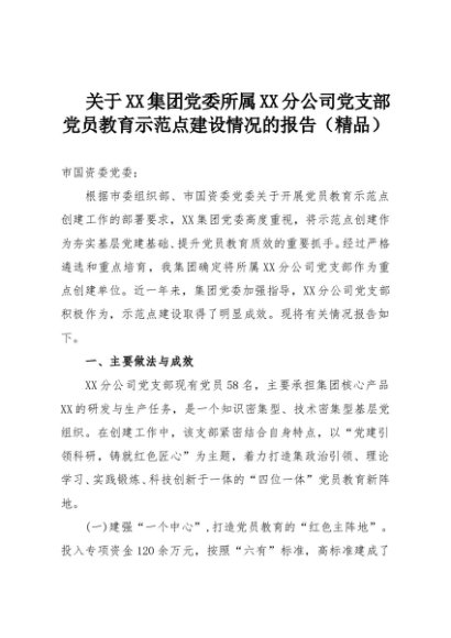 【七哥公文】2025年:关于XX集团党委所属XX分公司党支部党员教育示范点建设情况的报告(精品)+更多免费公文+VX:QiGeGongWen2024