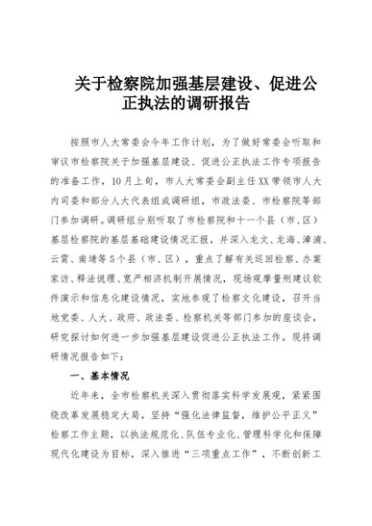 【七哥公文】2025年:关于检察院加强基层建设、促进公正执法的调研报告+更多免费公文+VX:QiGeGongWen2024