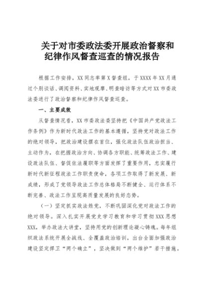【七哥公文】2025年:关于对市委政法委开展政治督察和纪律作风督查巡查的情况报告+更多免费公文+VX:QiGeGongWen2024