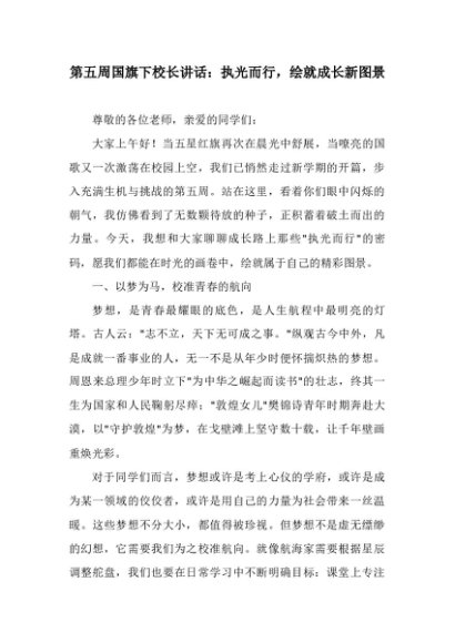 【七哥公文】2025年:第五周国旗下校长讲话:执光而行,绘就成长新图景+更多免费公文+VX:QiGeGongWen2024