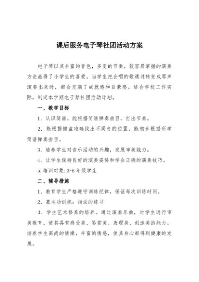 / 【七哥公文】2025年:课后服务电子琴社团活动方案+更多免费公文+VX:QiGeGongWen2024