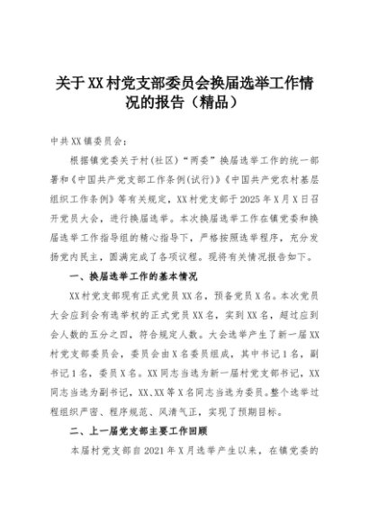 / 【七哥公文】2025年:关于XX村党支部委员会换届选举工作情况的报告(精品)+更多免费公文+VX:QiGeGongWen2024