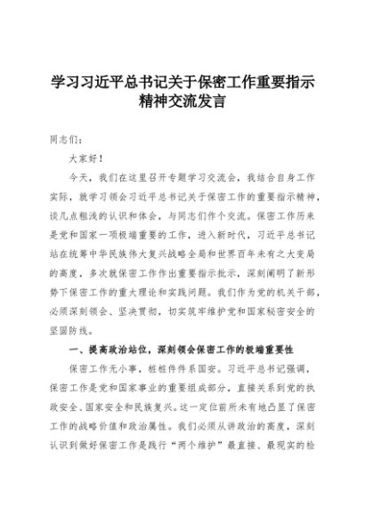 / 【七哥公文】2025年:学习习近平总书记关于保密工作重要指示精神交流发言+更多免费公文+VX:QiGeGongWen2024