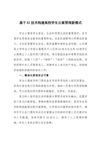 / 【七哥公文】2025年:基于AI技术构建高校学生公寓管理新模式+更多免费公文+VX:QiGeGongWen2024