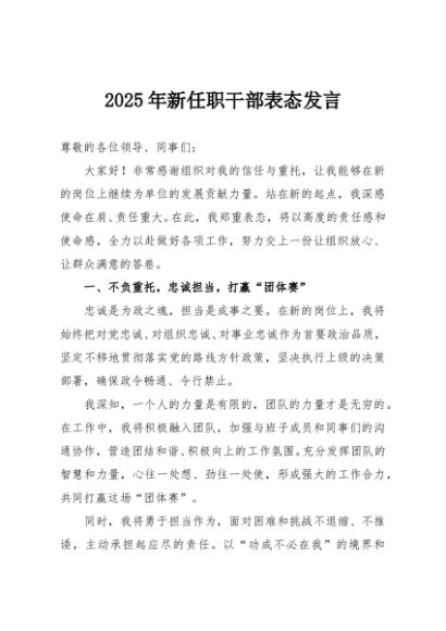 【七哥公文】2025年:2025年新任职干部表态发言+更多免费公文+VX:QiGeGongWen2024