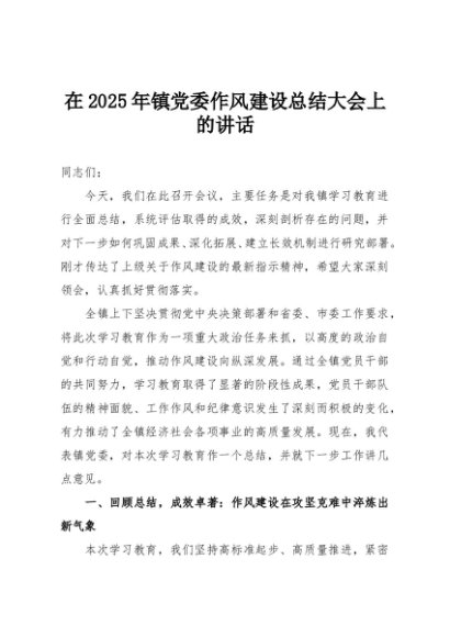 / 【七哥公文】2025年:在2025年镇党委作风建设总结大会上的讲话+更多免费公文+VX:QiGeGongWen2024