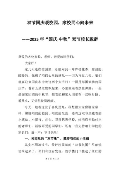 【七哥公文】2025年:2025年“国庆·中秋”双节校长致辞:双节同庆暖校园,家校同心向未来+更多免费公文+VX:QiGeGongWen2024