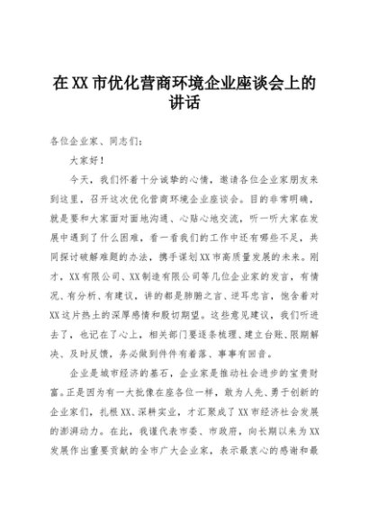 / 【七哥公文】2025年:在XX市优化营商环境企业座谈会上的讲话+更多免费公文+VX:QiGeGongWen2024