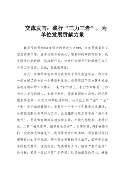 / 【七哥公文】2025年:交流发言:践行“三力三者”,为单位发展贡献力量+更多免费公文+VX:QiGeGongWen2024
