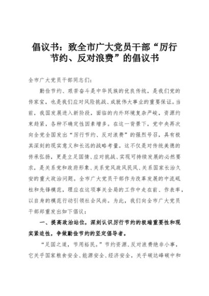 【七哥公文】2025年:倡议书:致全市广大党员干部“厉行节约、反对浪费”的倡议书+更多免费公文+VX:QiGeGongWen2024