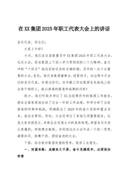 / 【七哥公文】2025年:在XX集团2025年职工代表大会上的讲话+更多免费公文+VX:QiGeGongWen2024
