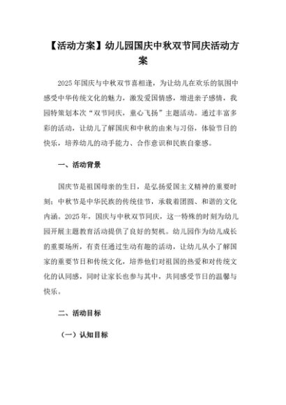 / 【七哥公文】2025年:【活动方案】幼儿园国庆中秋双节同庆活动方案+更多免费公文+VX:QiGeGongWen2024