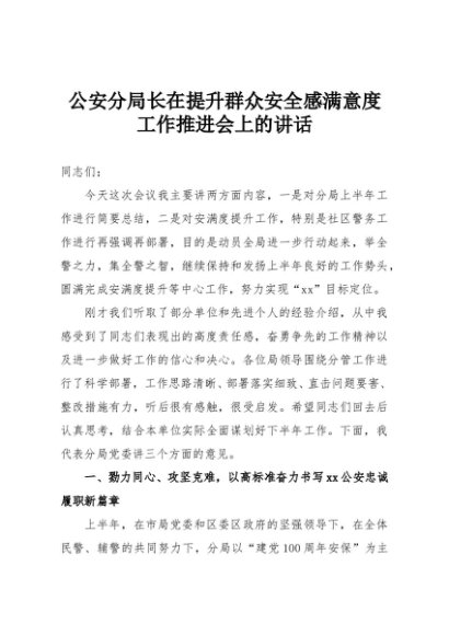 / 【七哥公文】2025年:公安分局长在提升群众安全感满意度工作推进会上的讲话+更多免费公文+VX:QiGeGongWen2024