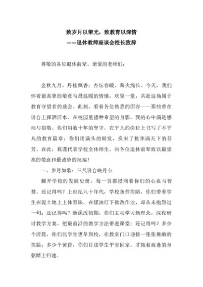 【七哥公文】2025年:致岁月以荣光,致教育以深情——退休教师座谈会校长致辞+更多免费公文+VX:QiGeGongWen2024