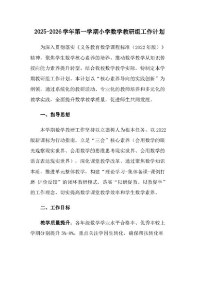 【七哥公文】2025年:2025-2026学年第一学期小学数学教研组工作计划+更多免费公文+VX:QiGeGongWen2024