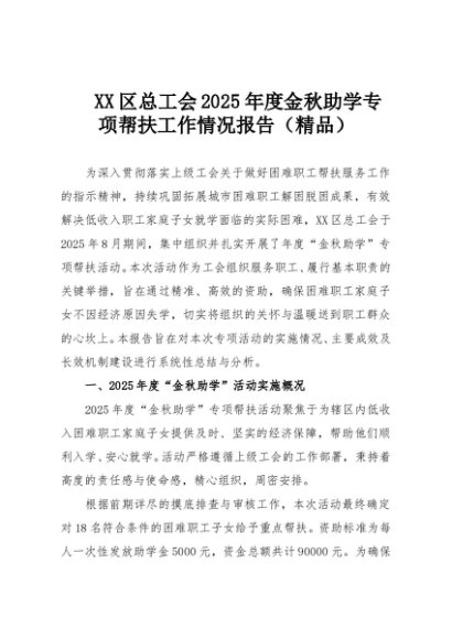 【七哥公文】2025年:XX区总工会2025年度金秋助学专项帮扶工作情况报告(精品)+更多免费公文+VX:QiGeGongWen2024