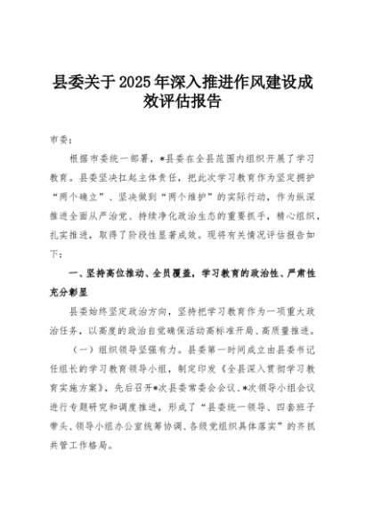 / 【七哥公文】2025年:县委关于2025年深入推进作风建设成效评估报告+更多免费公文+VX:QiGeGongWen2024