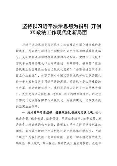 【七哥公文】2025年:坚持以习近平法治思想为指引 开创XX政法工作现代化新局面+更多免费公文+VX:QiGeGongWen2024